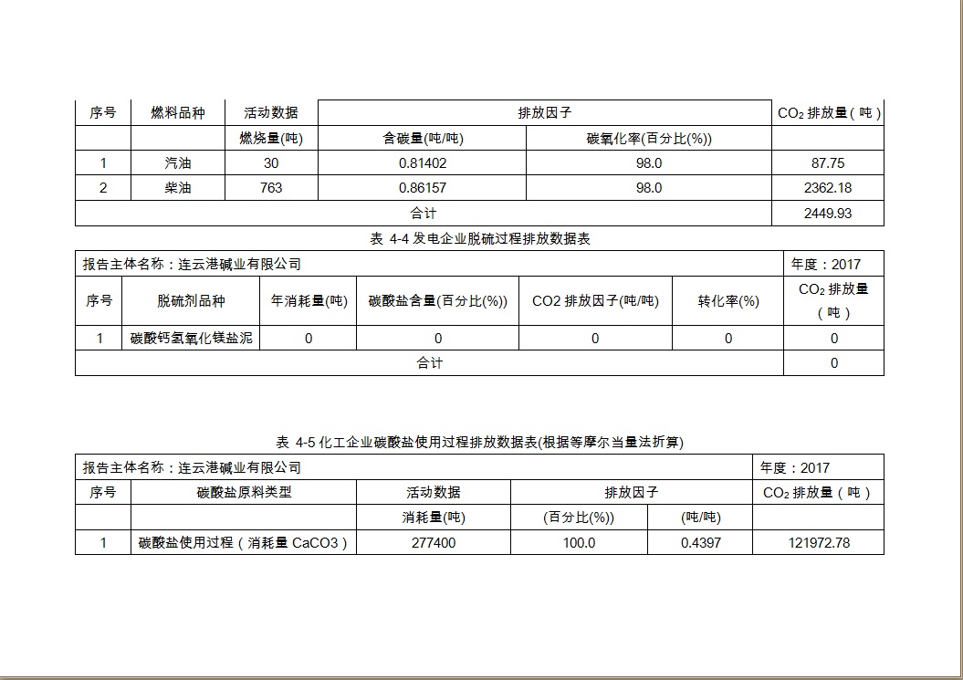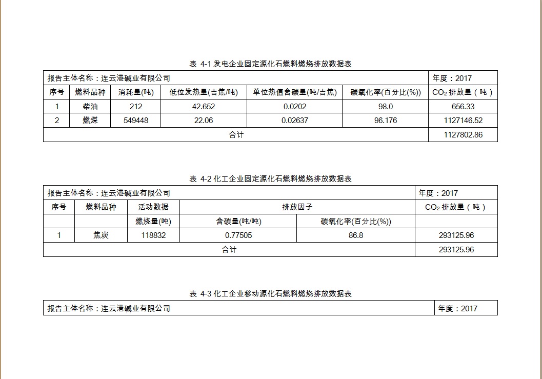 連云港堿業(yè)有限公司2017年度溫室氣體排放報告