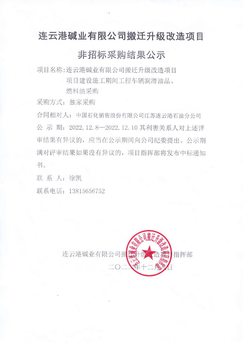 項(xiàng)目建設(shè)施工期間工程車輛潤(rùn)滑油品、燃料油采購(gòu)非招標(biāo)采購(gòu)結(jié)果公示