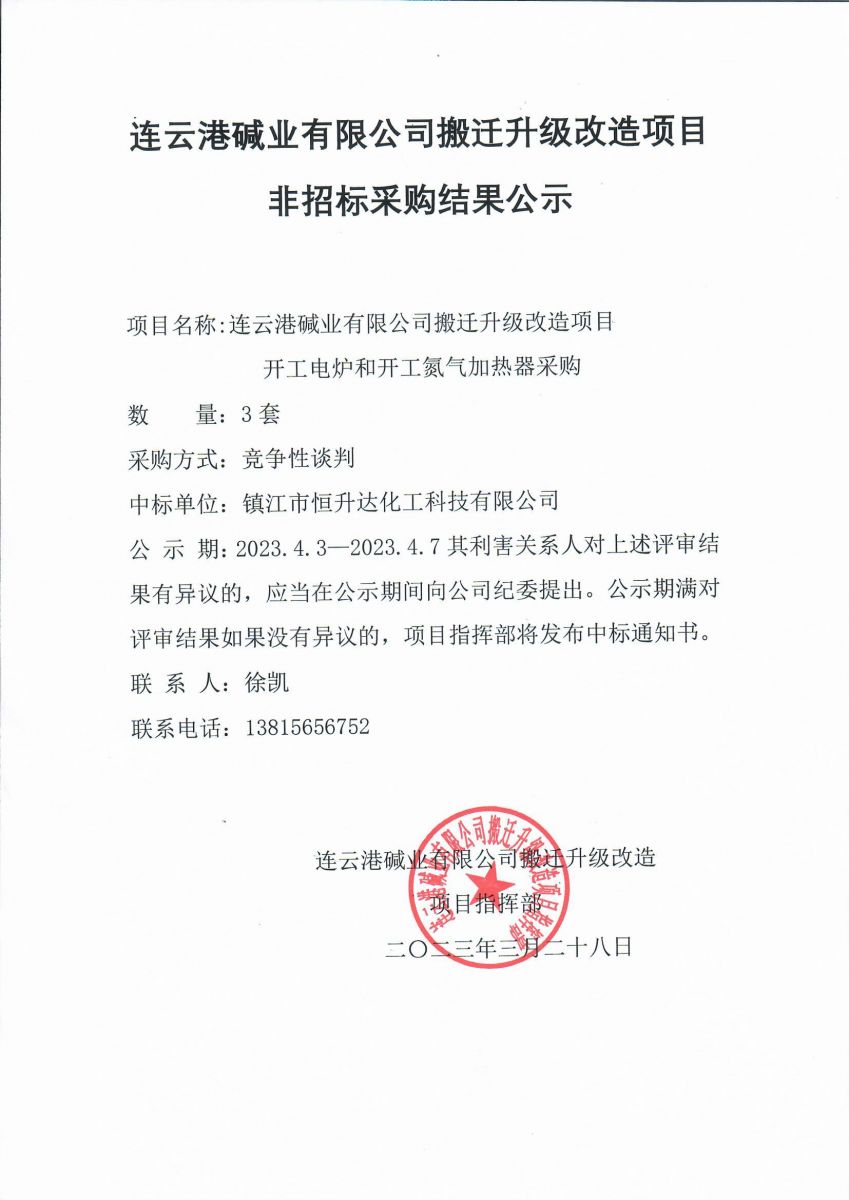 開工電爐和開工氮氣加熱器非招標(biāo)采購結(jié)果公示