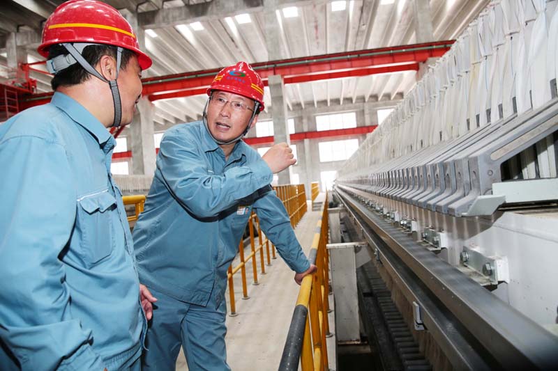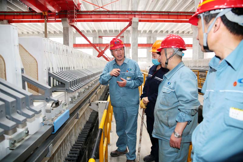 5月16日上午,公司黨委書記、董事長(zhǎng)張衛(wèi)民,黨委副書記、總經(jīng)理李清菊,黨委委員、副總經(jīng)理黃建華,黨委委員、副總經(jīng)理焦旺盛等一行到渣處理車間指導(dǎo)工作。