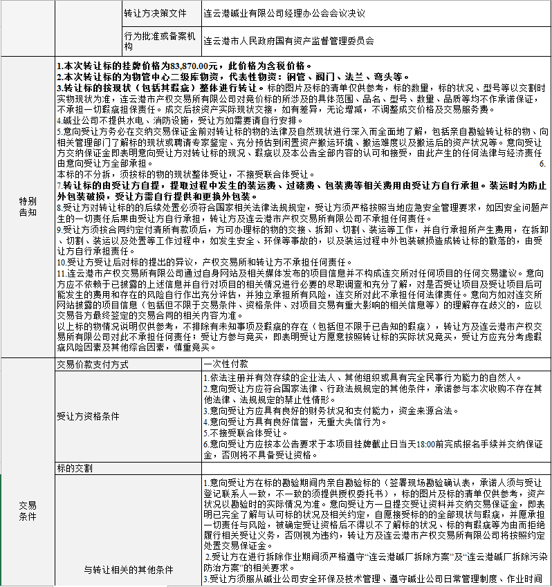 連云港堿業(yè)有限公司物管中心二級(jí)庫物資轉(zhuǎn)讓公告