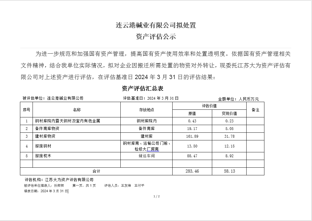 檢修廠房及鋼材庫物資資產(chǎn)評估公示